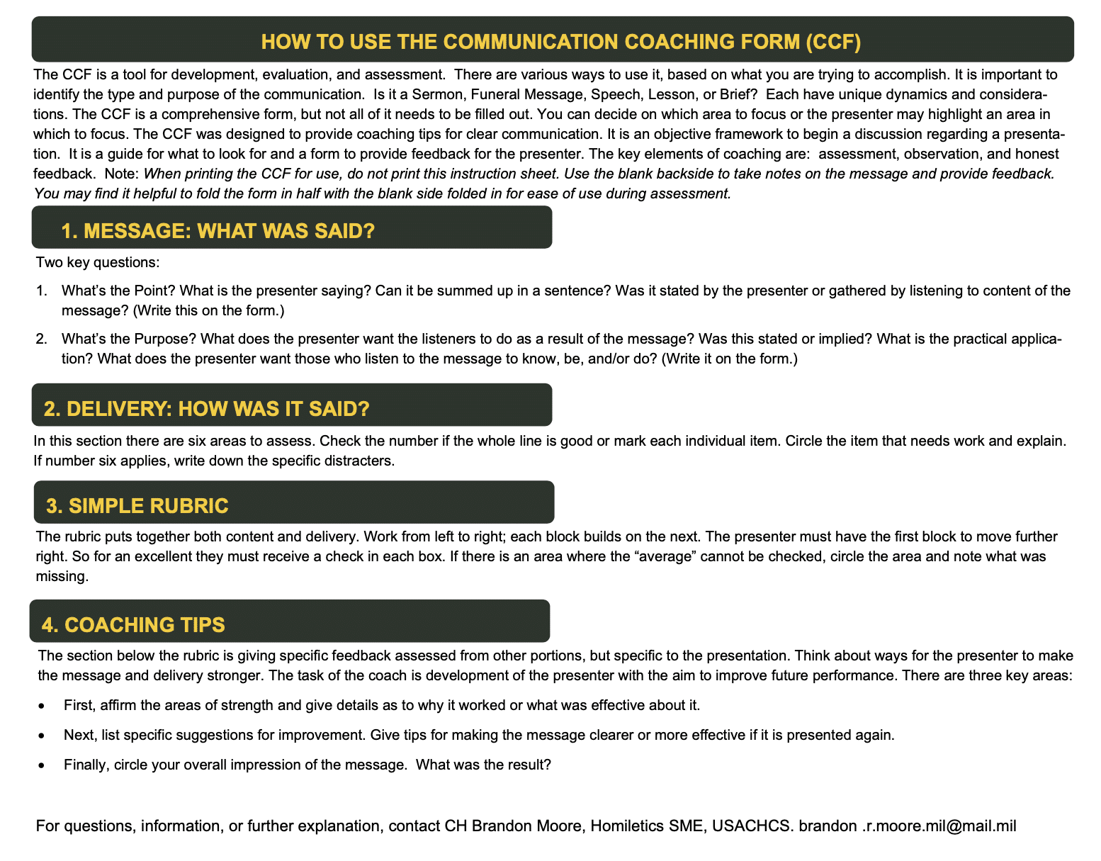 How to use the Communication Coaching Form